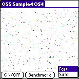 また、画面メモリーに直接アクセスする効果を測定するために、図2 に示すようにFASTとSAFEという2つの描画方法とBenchmark機能を用意しました。FASTでは画面のメモリーに直接アクセスし、SAFEではWindow